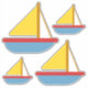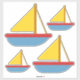 Esta página de adesivos fofinhos apresenta quatro veleiros de brinquedos antigos em tons brilhantes de vermelho, azul, amarelo e branco.