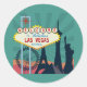 Estes adesivos de viagens vintage apresentam um retrô ilustrativo das boas-vindas ao sinal de Las Vegas e ao horizonte e marcos da cidade de Las Vegas, Nevada!