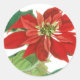 Um adesivo com uma ilustração botânica vintage de uma poinsettia vermelha brilhante para o Natal.