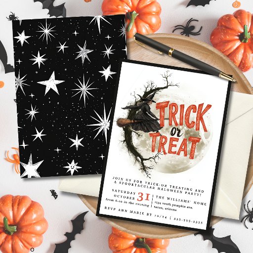 Trick or Treat Vintage Flying Witch Halloween Criado por Annie M. Williams