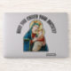 Este belo adesivo de contorno apresenta uma imagem católica tradicional da Virgem Abençoada Maria com o Bebê Jesus. Acima está o texto "VOCÊ CHAMOU SUA MÃE? Todo texto e fontes podem ser modificados.