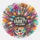 Virtual Variety Art Studio round sticker featuring vivid color and detailed artwork. Printed on glossy white paper for bright tones and a smooth finish. Perfect for planners, journals, scrapbooks, gift wrapping, and everyday decorating. A fun and expressive way to add artistic personality to your favorite surfaces.
