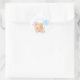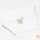 Votem o grupo de cor rosa ou azul em uma festa reveladora de gênero com este adesivo! Ilustração de um ursinho de peluche aquoso segurando balões azuis O texto diz "garoto da equipe".