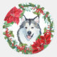 Adesivo Watercolor Malamute Dog Poinsettia Holiday Wreath