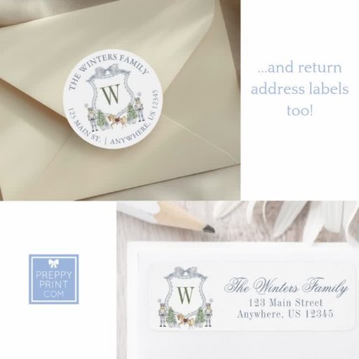 PreppyPrint.com - Adicione um toque de elegância caprichosa ao seu Natal com a coleção Watercolor Nutcracker Monographic Crest. Com bolachas encantadoras em tons azuis macios, esta crista festiva é o toque perfeito para a sua temporada de na moda. Transfira este design para os produtos de sua escolha também! Visite minha loja de designers, PreppyPrint.com, para coordenar itens.