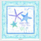 O conjunto de quatro imagens a serem coordenadas está disponível. Esta design apresenta o ditado, "Sandy toes Salty Kisses", e uma brilhante e colorida trio de estrelas-do-mar com amaldiçoos e ondas e contornos de água. Copyright, Audrey Jeanne Roberts.