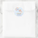 Lindo diseño de Pegatina fiesta de Baby Shower con Tematica de Oso "We can Bearly Wait baby" es un diseño lindo con tonos azules y la ilustracion de un oso con globos cafe. En el diseño puedes añadir nombre y fecha de tu fiesta. No Lo Pienses y adquiere este lindo diseño ahora.