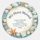 Announce your new home in style using the seaside breezy 'We Have Moved New Address Chic Seaside Beach House Classic Round Sticker' - a chic coastal return address label designed for elegant relocations by the sea. Blending coastal charm with soft shoreline tones, this round sticker transforms a simple moving update into a polished statement. Whether you’ve relocated to a waterfront retreat in a beach, a serene escape near coastal location or a charming seaside cottage near ocean, this design captures the relaxed luxury associated with beachside living. The text is customizable.