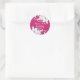Fundo magenta chic e moderno, decorado com delicado arranjo floral branco estilo esboçado no canto superior direito e inferior esquerdo. Fonte de serifa em branco para a tipografia personalizável para o obrigado que você envia e detalhes adicionais da parte.