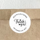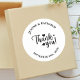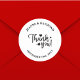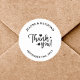 Apresentando nosso White Script Personalizado Moderno de Casamento Obrigado Clássico Round Sticker, uma mistura de elegância contemporânea e encanto personalizado. Este adesivo apresenta um roteiro branco nítido em um design redondo clássico, perfeito para adicionar um toque de na moda na sua papelaria de casamento. Personalize com seus nomes e data de casamento para criar uma manutenção única. Ideal para selar envelopes, decorar favores, ou expressar gratidão em notas obrigado-você, ele melhora a sofisticação e a personalização de suas celebrações de casamento com cada detalhe.