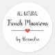 Um adesivo moderno de "macarões franceses" com uma letra preta sobre um simples fundo branco embelezado por um coração vermelho bonito. Personalizar texto.