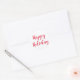 Um adesivo branco simples com um guião vermelho arrojado Feliz Feriado. Acessório perfeito para um presente elegante ou embrulho de produto com um natal vintage.