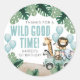Add a fun, modern touch to your party favors, envelopes, and gifts with this Wild One birthday party sticker designed with a teal blue look perfect for any first birthday celebration. The front features soft teal blue balloons for a cheerful, playful feel, paired with the message Thank you for a wild good time. The text is styled in a bold rustic teal blue font mixed with a clean gray sans serif, creating a clean, modern design. Space is included to personalize the child’s name and age.
