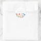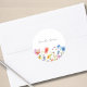 This personalized round sticker features delicate watercolor wildflowers in soft pink, blue, yellow, and purple tones along the bottom, paired with an elegant script name across the clean white surface. Beautiful and practical, it’s perfect for school or office.