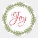 Vedante de envelope festivo elegante e moderno ou adesivo de presente para o Natal com o texto "Joy" na caligrafia vermelha e uma coroa verde na moda de inverno sobre fundo branco. Desenvolvido exclusivamente para você pelo Happy Dolphin Studio. Se precisar de ajuda ou produtos correspondentes, entre em contato conosco através do bate-papo da loja!