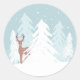 Primeiro Aniversário Wonderland, Onederland Sticker. Com pequenos flocos de neve, veados e pinheiros bonitos. Defina um tom doce e mágico para a festa com este design de autocolante de coordenação. Perfeito para o primeiro aniversário do seu pequeno boneco de neve.