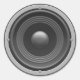 Renderização realista de um auto-falante estéreo (ou dois). Gráfico preto e branco, em t-shirts, capuzes, cartas, presentes.
