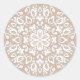 Esta mandala branca senta-se sobre um fundo castanho-claro ou castanho-claro. A cor é macia e natural. Em algumas luzes pode parecer uma cinza quente. Parte da coleção Pras Mandala.
