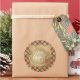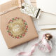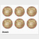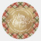 Feliz Natal em letras brancas em chic num esplash de folha de ouro falsa, estes autocolantes redondos são personalizados com o Sweet Holiday Wish e o nome da sua família em letra chic num padrão de rabiscos de ouro num padrão de xadrez de férias. A combinar placas de papel, guardanapos e MAIS designs na nossa loja.