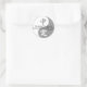O yin yang, símbolo de Tao, com o provérbio de Zen "Quanto mais quieto você se torna, mais você consegue ouvir".