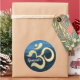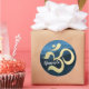 Yoga Malhação Studio / Instrutor de Meditação / Treinador Pessoal / Treinador de Vida / Healer / Mestre de Reiki / Modelo de Sticker de Terapia de Massagem - Símbolo de Om de Folha Ouro de Faux Moderno em Fundo do Padrão de Onda Azul Escuro.