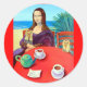 Mona está para tomar chá com seus dois Yorkies. Ela e Leo (como em Leonardo da Vinci) tiveram uma repercussão, e ela escreveu a ele uma carta do Querido Leo. Pobre Leo. Pelo menos o chá é bom. Brilho, Divertido, Colorido, Vermelho Gordo que os gritares me olham! Do quadro original do meu ©Lyn Hamer Cook.