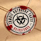 Vintage look round sticker for a zombie themed party, with weathered sign.