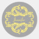 Os adesivos Chic Damask Elegantes e sofisticados, com fundo de cinza macio e um ornamento na moda de damasco, florescem em amarelo. Esta design moderna é fácil de personalizar com o seu próprio texto. Clique em "Personalizar" para encontrar mais opções de personalização.
