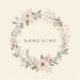 Etiquetas de wreath com texto personalizado, como nomes ou votos.