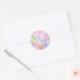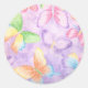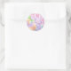 Um adesivo de forma redonda mostrado em um impressão de borboletas cor de lavanda giro. Personalize este item ou comprar como está.