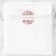 Adesivo de aniversário redondo é mostrado com uma linda impressão floral de peônia rosa.