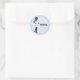 Este adesivo combina com anúncios, convites de chá de bebê e selos postais encontrados na minha loja. O design é de uma futura mãe em silhueta com a mão na barriga de bebê. Ela está usando um vestido azul e branco e está em um fundo azul manchado. Perfeito para adicionar aquele toque final ao selar o envelope.