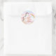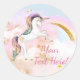 Adesivos de unicórnio com lindo unicórnio em um fundo de redemoinho de arco-íris. Você pode personalizar facilmente esses adesivos de unicórnio para o seu evento, simplesmente adicionando o texto de sua escolha. Você também pode alterar a cor do fundo. Este é um design impresso sem brilho real.