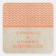 Moderno com uma reviravolta de vintage são esses adesivos Chic Chevron. Este design apresenta um plano de fundo de aparência de papel antigo e um padrão de gesso zigzag em laranja. Fácil de personalizar, simplesmente adicione seus detalhes de casamento. Clique em "Personalizar" para encontrar mais opções de personalização.