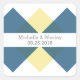 Autocolantes geométricos modernos e quic com design de triângulo na moda em azul escuro e amarelo. Fácil de personalizar, este simples e elegante design pode ser personalizado com seus detalhes de casamento. Clique em "Personalizar" para encontrar mais opções de personalização.