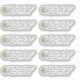 Etiquetas de endereço de retorno em forma de dólar de areia moldadas à imagem e texto. Perfeitas para quem vive uma vida tropical e de praia. Escolha o design com contorno claro ou branco. Uma única imagem de dólar de areia está à esquerda do texto cinza escuro impresso, onde o nome e o endereço serão adicionados. Use três a cinco linhas de texto conforme necessário e adicione o texto uma vez. O mesmo texto será impresso em todos os adesivos. Dez adesivos por folha e certifique-se de escolher o tamanho correto da folha para fazer os rótulos do tamanho necessário.