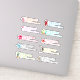 Adesivos de endereço de devolução tropicais moldados ao texto e imagens. Cada folha contém dez imagens tropicais com nome e endereço. Use o modelo para adicionar seu endereço uma vez e ele aparecerá em várias cores ao lado de imagens de conchas, flamingo, flores tropicais, estrelas-do-mar, abacaxis, dólar-da-areia e pranchas de surfe. O texto impresso é fácil de ler nestes rótulos imaginativos e únicos. Escolha contorno branco ou transparente. Escolha o tamanho da folha que você precisa para fazer rótulos em tamanhos personalizados.