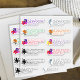 Adesivos de endereço de retorno moldados com flores tropicais e desenhos de vida marinha. Etiquetas coloridas se moldam ao seu texto. Cada etiqueta tem uma imagem no lado esquerdo. Flores de hibisco, golfinho, polvo e flores de ave do paraíso são as imagens com texto impresso colorido. Use três ou quatro linhas para o endereço, que será impresso da mesma forma em todas as etiquetas. Mostrado em um tamanho de folha de 6 polegadas. Se você quiser etiquetas maiores, escolha um tamanho de folha maior.