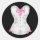 Elegante adesivo de espartilho de damasco branco com laços cor-de-rosa. Você pode adicionar texto simplesmente escolhendo o botão "Personalize!".