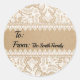 Adesivos de Etiqueta de Presente Personalizados Rustic Lace To/From. Para personalizar ainda mais, clique no botão "personalizar" para inserir suas informações. Para personalização adicional, clique no link "personalizar mais" para modificar o modelo. *Renda cortesia de SatoshiStock e Freepik.com