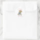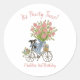 Estes adesivos apresentam um retrato de aquarela de um filhote fofo sentado numa bicicleta com um grande buquê de flores cor-de-rosa e arco azul e branco