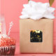 Pequeno adesivo quadrado mostrado em uma impressão de cena de abóboras assustadoras de Halloween. Personalize este item ou compre como está. imagem de estoque all-free-download.com freepik.com