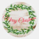 Este adesivo redondo é mostrado em uma impressão festiva de uma coroa de Natal.