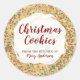 Adesivo de Biscoito com Granulado de Natal com fundo de biscoito temático de Natal, com granulados vermelhos, verdes e brancos e creme de glacê branco. O produto inclui um modelo para personalizar com seu nome e mensagem.