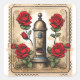 Lindos Adesivos de Selos Românticos Vermelhos. Caixa de correio e rosas vermelhas em um selo retrô. Arte Vintage.