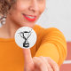 Este design é um troféu preto e branco. O troféu é o tipo de aparência tradicional com uma xícara e duas alças. Parece estar brilhando no topo. Este design de troféu preto e branco parece excelente neste adesivo