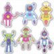 Seis robôs personalizados coloridos.