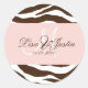 Adesivos de casamento de zebra marrom com monograma (selos de envelope), tons de rosa. Ótimo para uso diário. Totalmente personalizável. As fontes e as cores de fundo podem ser facilmente alteradas. Copyright © 2009 PixDezines.com e PixDezines em zazzle.com
