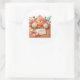 O adesivo é mostrado em uma linda impressão artística de buquê floral.