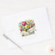 O adesivo é mostrado em uma linda impressão artística de buquê floral.